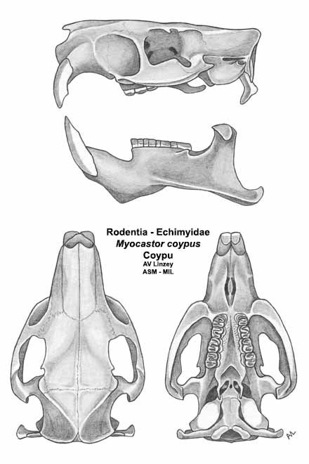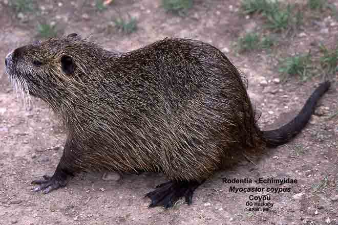 Natural home = South America. Introduced into U.S. over 80 years ago. Semiaquatic. Make nests of large piles of cattails, reeds, & sedges; often destroy habitat for other wildlife. Causes damage to agricultrure.