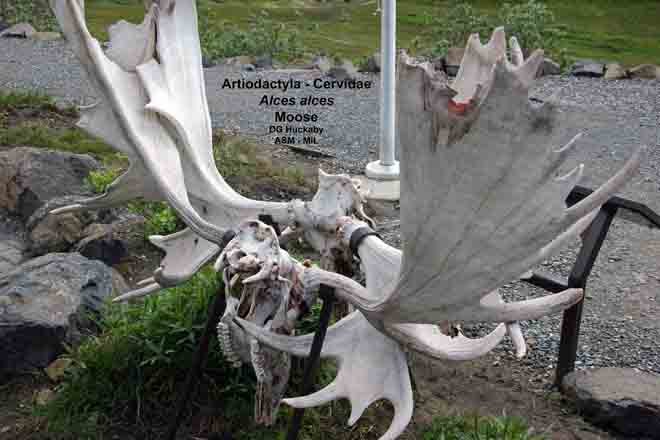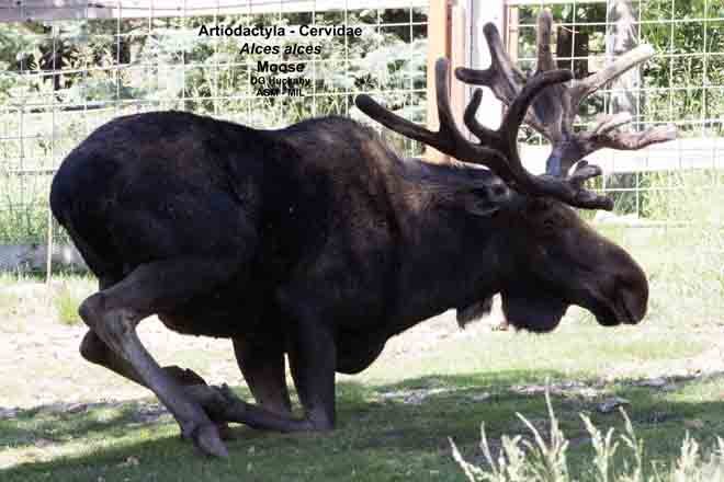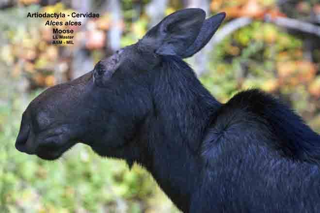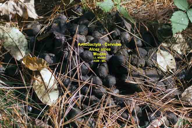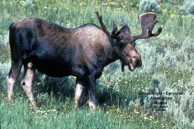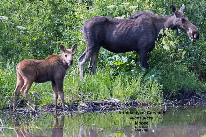 Largest North American deer. This species might be more abundant, but they are often found in rugged, boggy areas. Prefers forests with abundant wetlands. In summer eat aquatic plants, in winter more woody ones. Water helps cool them.