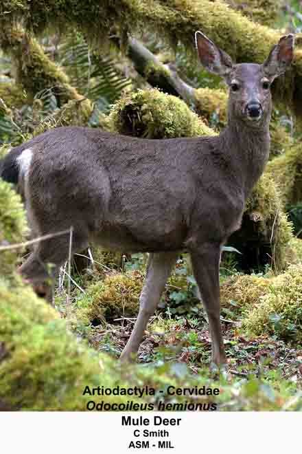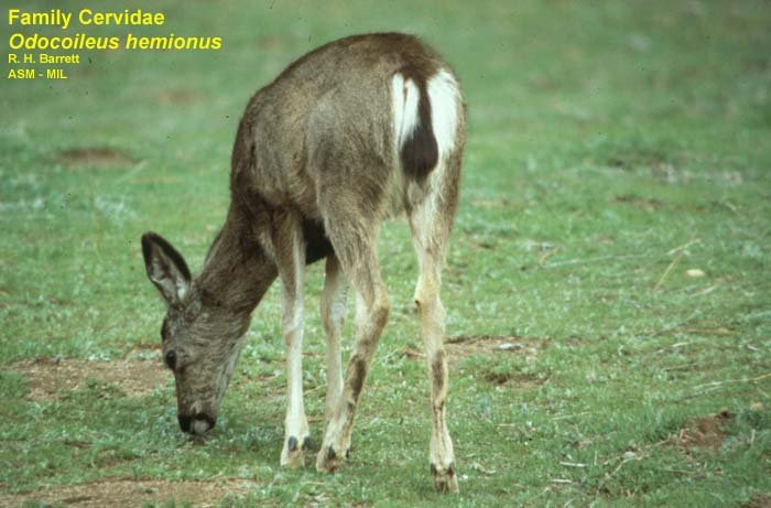 Noted for their bouncing gait. Found in arid areas and sparsely wooded areas. Introduced into several areas. Hybridize with white-tailed deer which seem to be displacing them. May also be harmed by non-native Barbary Sheep.