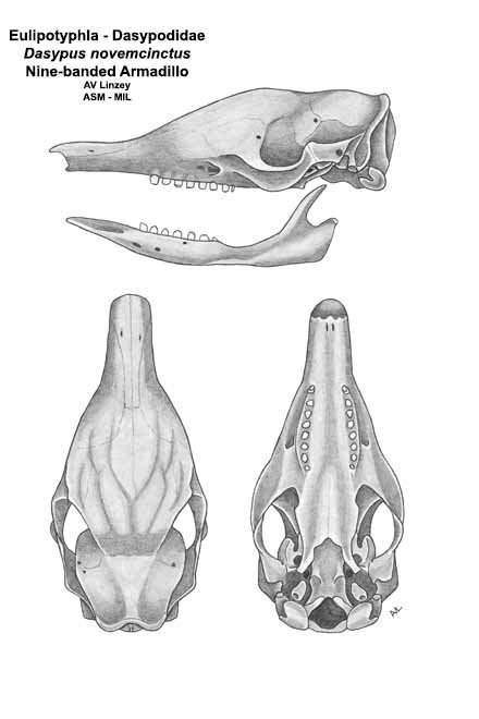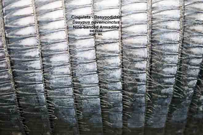 Range has spread north & east since 1900 and still expanding. Always born in litters of 4 identical (same sex) quadruplets. Covered by bony plates. Nocturnal, but may be out on cloudy days. Capable of carrying leprosy bacteria, Mycobacterium leprae.
