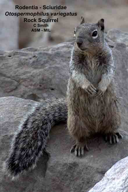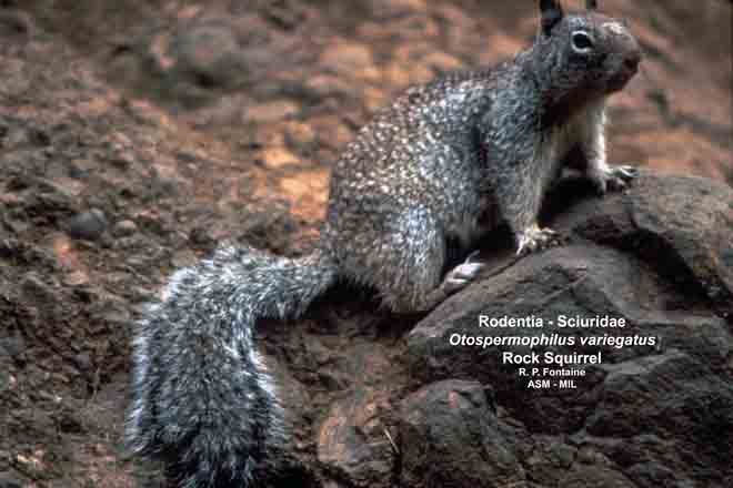 Large, rather bushy-tailed ground squirrel. Can climb trees